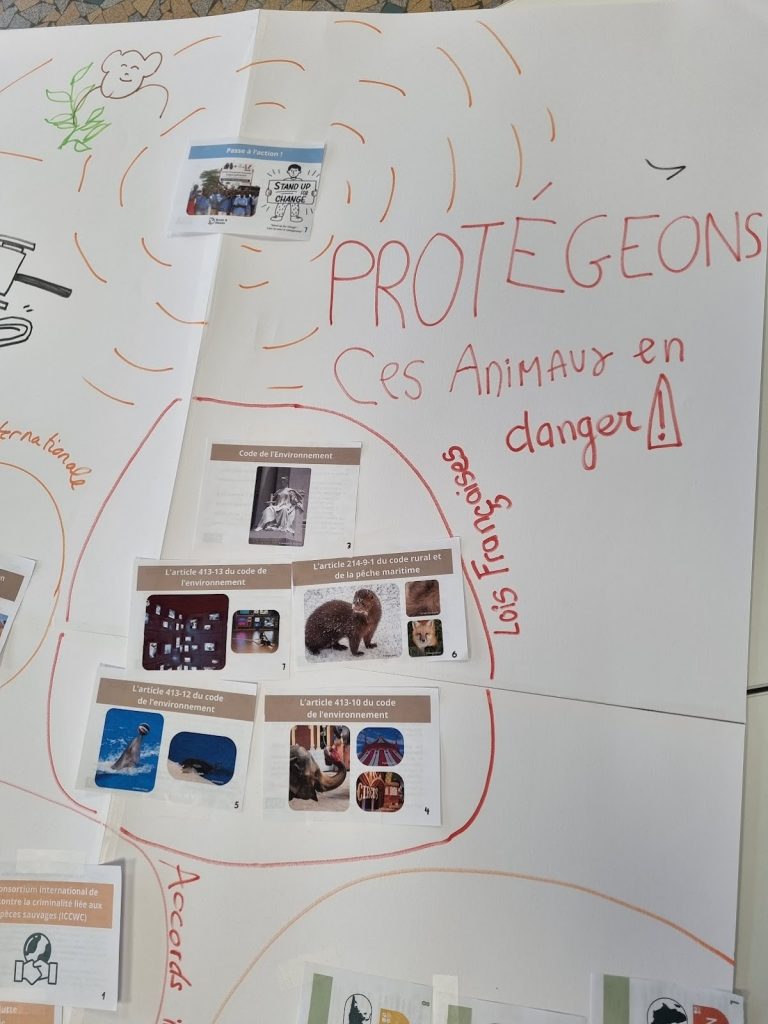 Formés à l’animation de la Fresque du Trafic des Espèces Sauvages par le Jane Goodall Institute France, ces élèves de 2nde 6 ont à leur tour sensibilisé des adultes de la MJC de Bernay ainsi que des jeunes de 3e en cursus professionnel. Une transmission de pair à pair qui illustre parfaitement l’autonomie et la responsabilité de ces lycéens.
