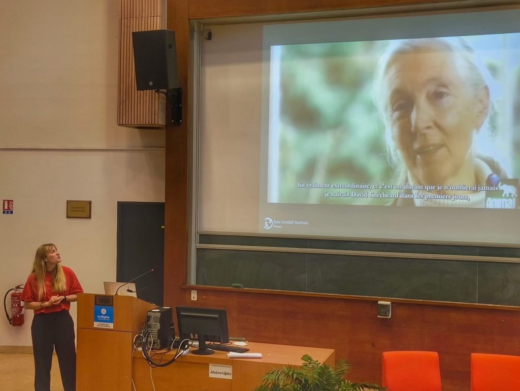 La matinée a débuté par une présentation du Jane Goodall Institute France consacrée à Jane Goodall, son parcours et son engagement.