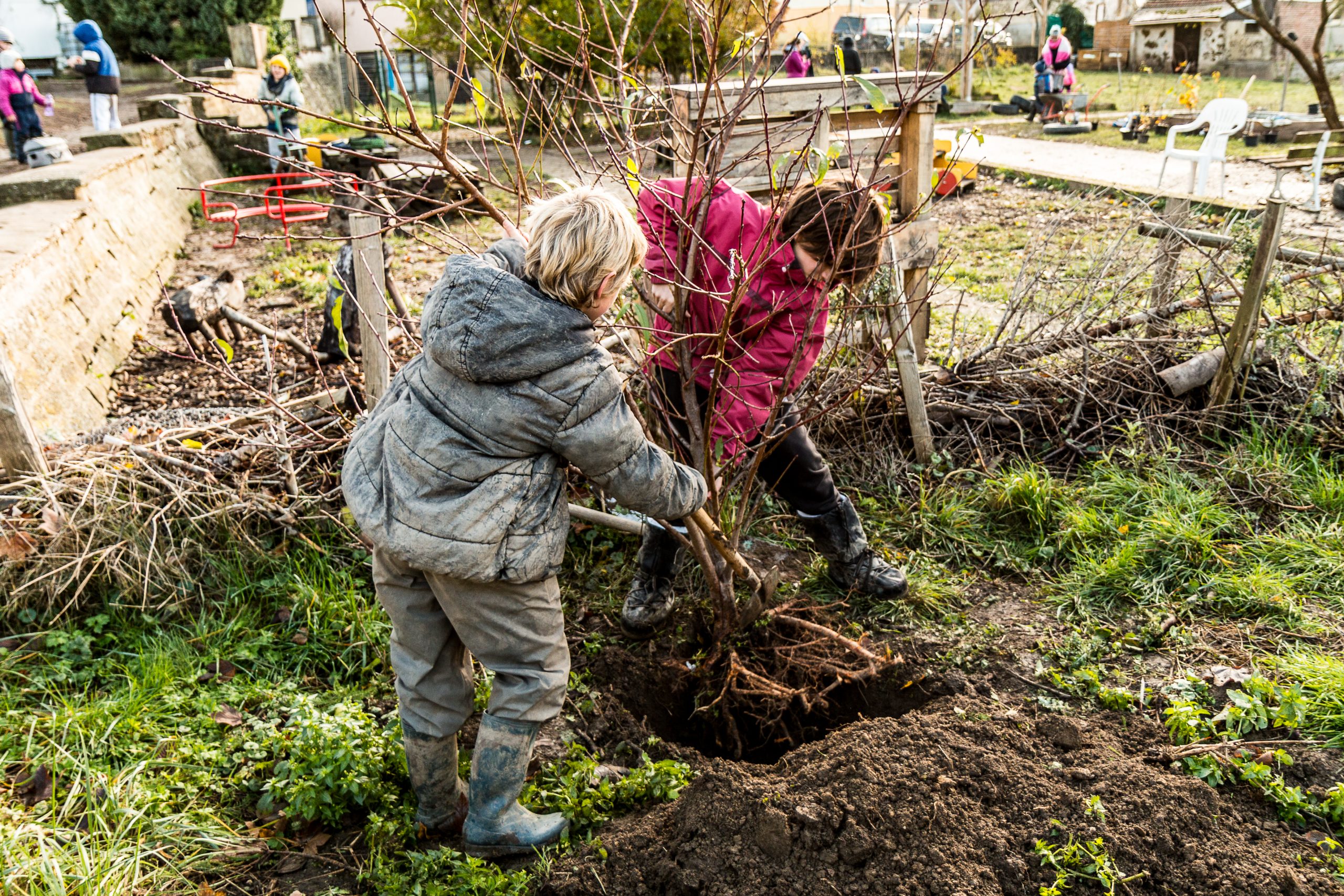Les élèves de l’école Sentiers d’Enfance (école alternative en Moselle), ont planté plus de 100 arbres dans le jardin de l’école l’année dernière.