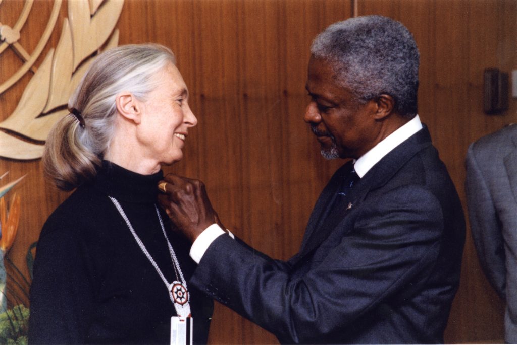 Messagère de la paix des Nations Unies depuis 2002, le Dr Goodall s’est récemment distinguée par son engagement sans faille à partager son message d’espoir et à inciter les individus du monde entier à agir et à faire la différence, chaque jour. Elle a soutenu d’innombrables causes et organisations tout au long de sa vie, utilisant sa notoriété pour défendre les droits de l’homme, le bien-être animal, la protection des espèces et de l’environnement, ainsi que de nombreuses autres questions cruciales.