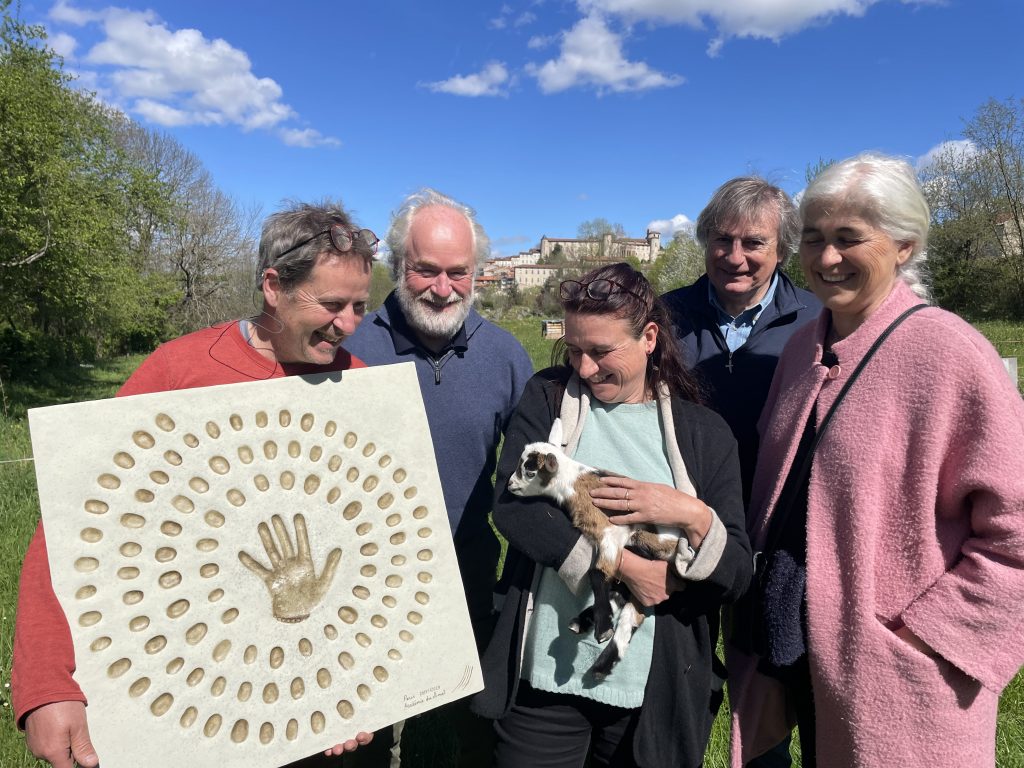 Et en souvenir de ce moment unique de rencontre et/ou retrouvaille de tant d’activistes, d’artistes et ONGs qui oeuvrent pour un monde meilleur pour les hommes, les autres animaux et notre environnement partagé, ce souvenir réalisé par Jean-Louis Orengo avec les empreintes de toutes ces personnalités, autour de l’empreinte de Jane Goodall 💚